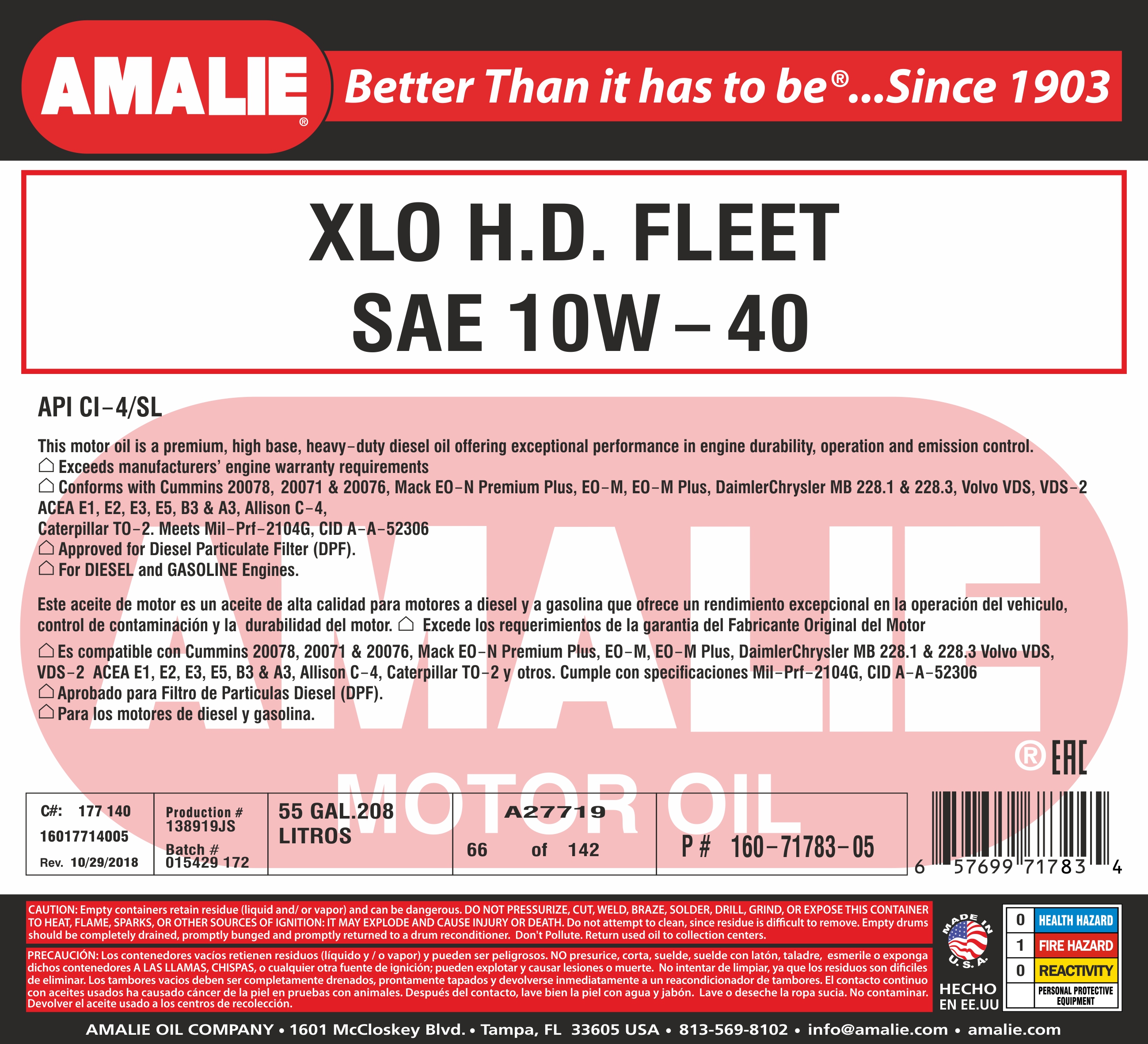 Масло моторное AMALIE XLO HD 10w40 18,9 л